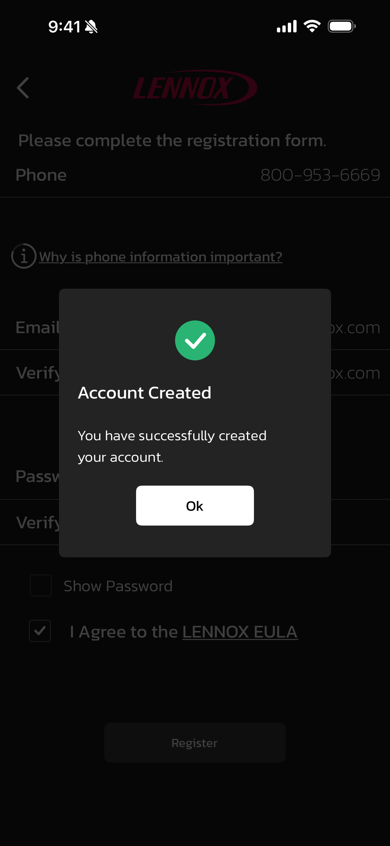 You can create a Lennox account from either your smart phone or directly on the thermostat.