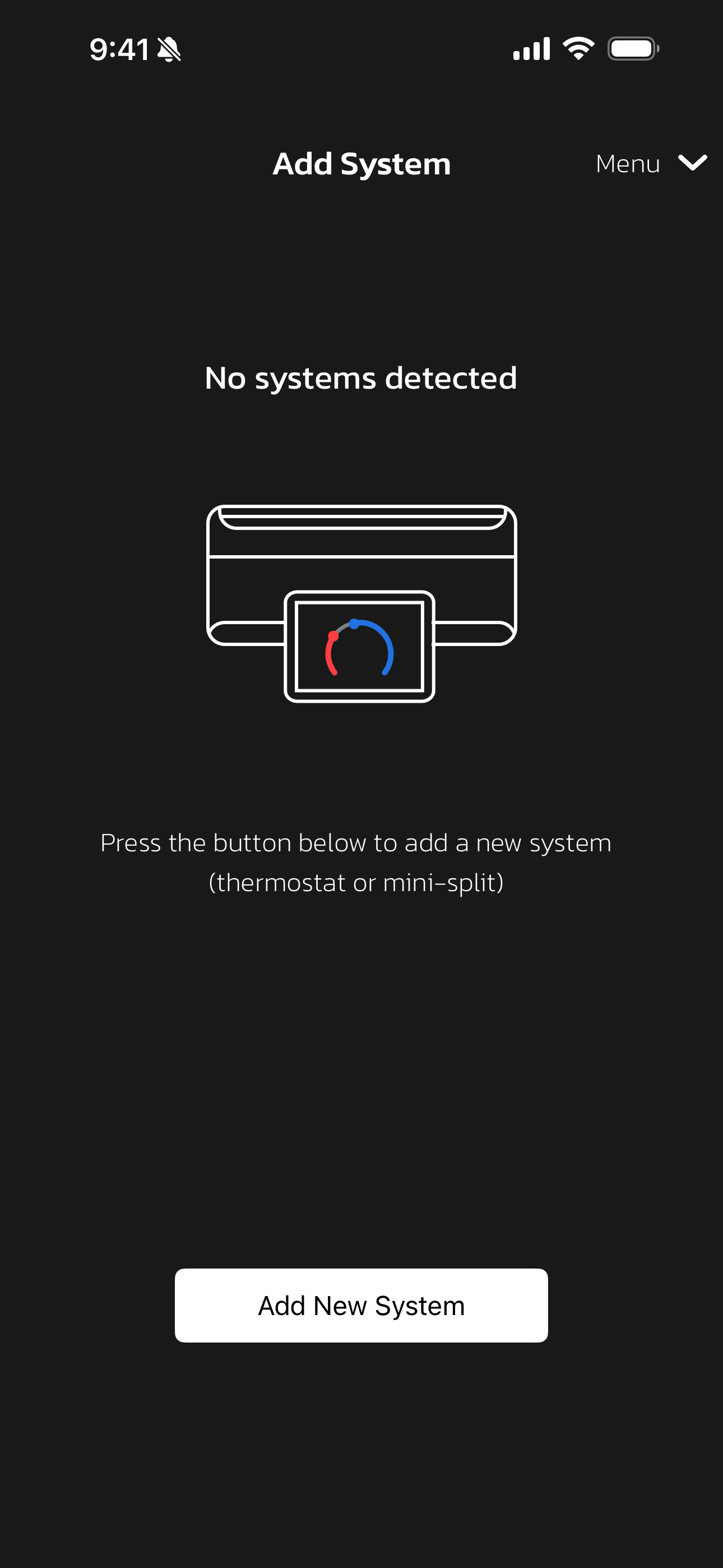• From the Lennox Home App go to Menu > Add Smart Thermostat.