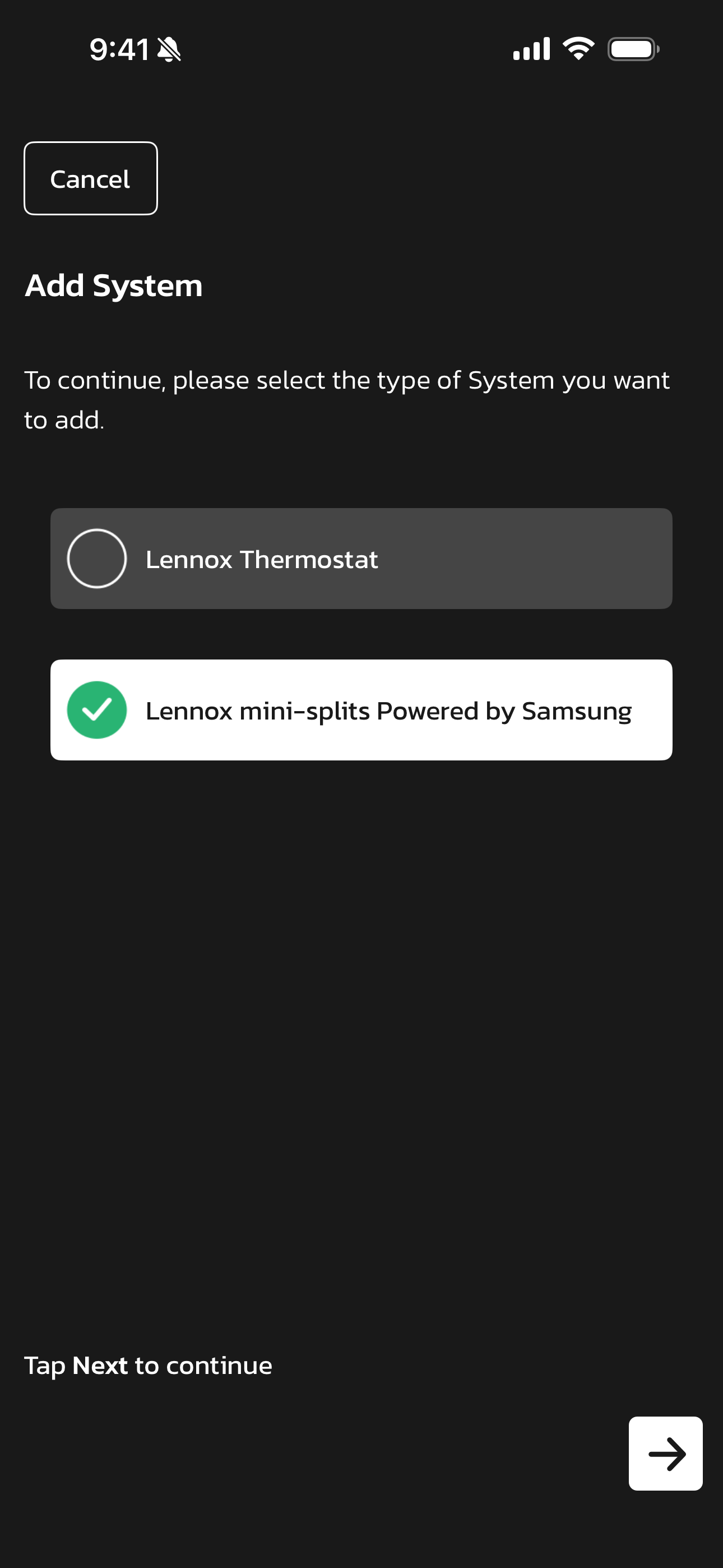 To add a thermostat to your account you will need to be standing in front of your Lennox S40 Smart Thermostat and be logged into your Lennox Home App.