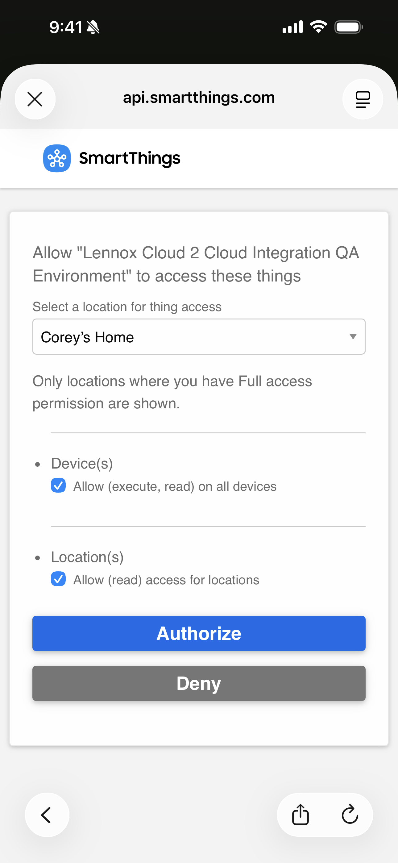 NOTE: You may be asked to allow access to your location all the time. This is required for Smart Away. Please select that option.