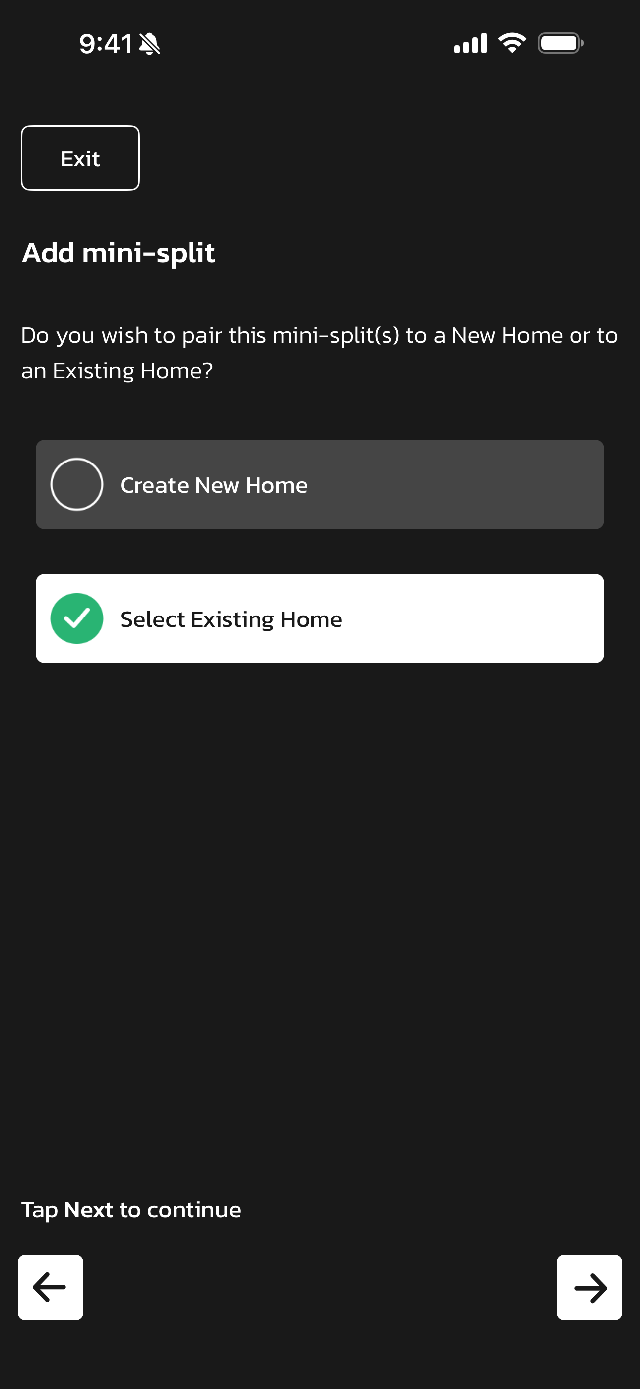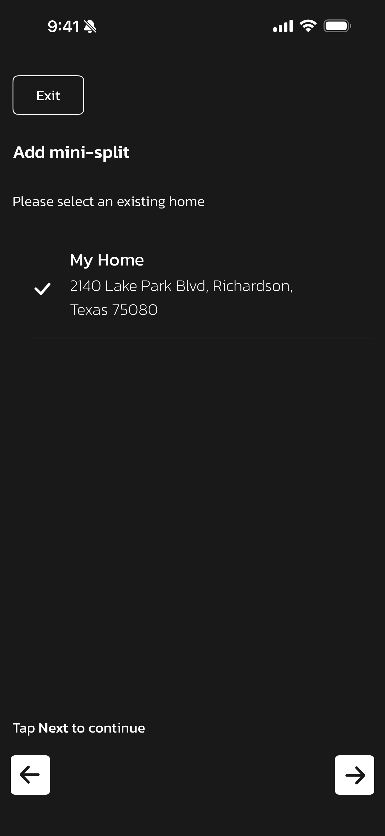• The next screen will display your Existing Homes listed within the account and the option to Add New Home.